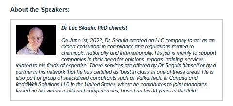 As a Canadian consultant specializing in domestic regulations, Dr. Luc Seguin delivers comprehensive chemical regulatory compliance solutions that transform obligations into competitive advantages. He provides meticulously crafted documentation, precision labeling, and strategic product registration with particular expertise in Canadian requirements while also supporting North American and European markets—ensuring your products meet all regulatory demands wherever you operate.